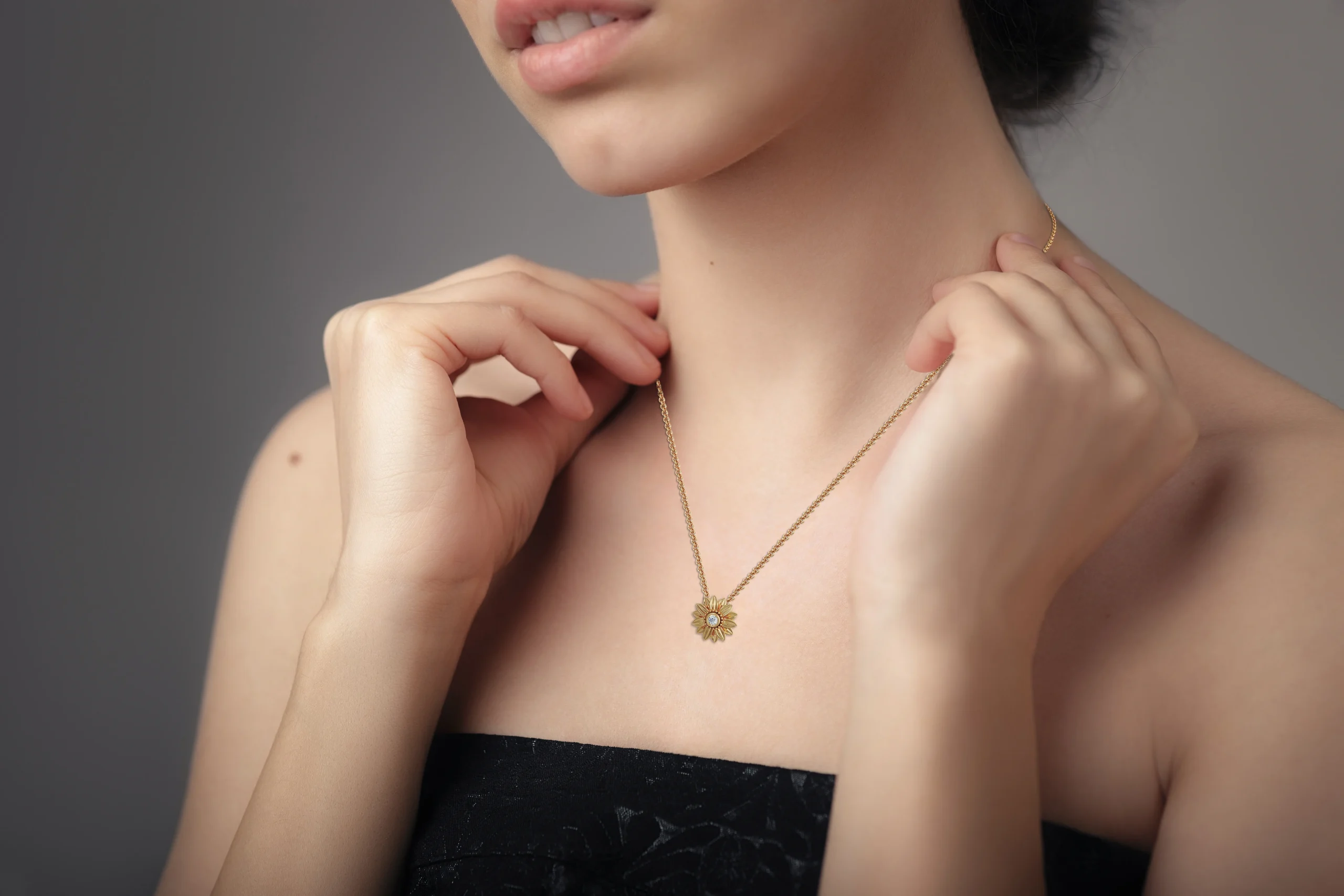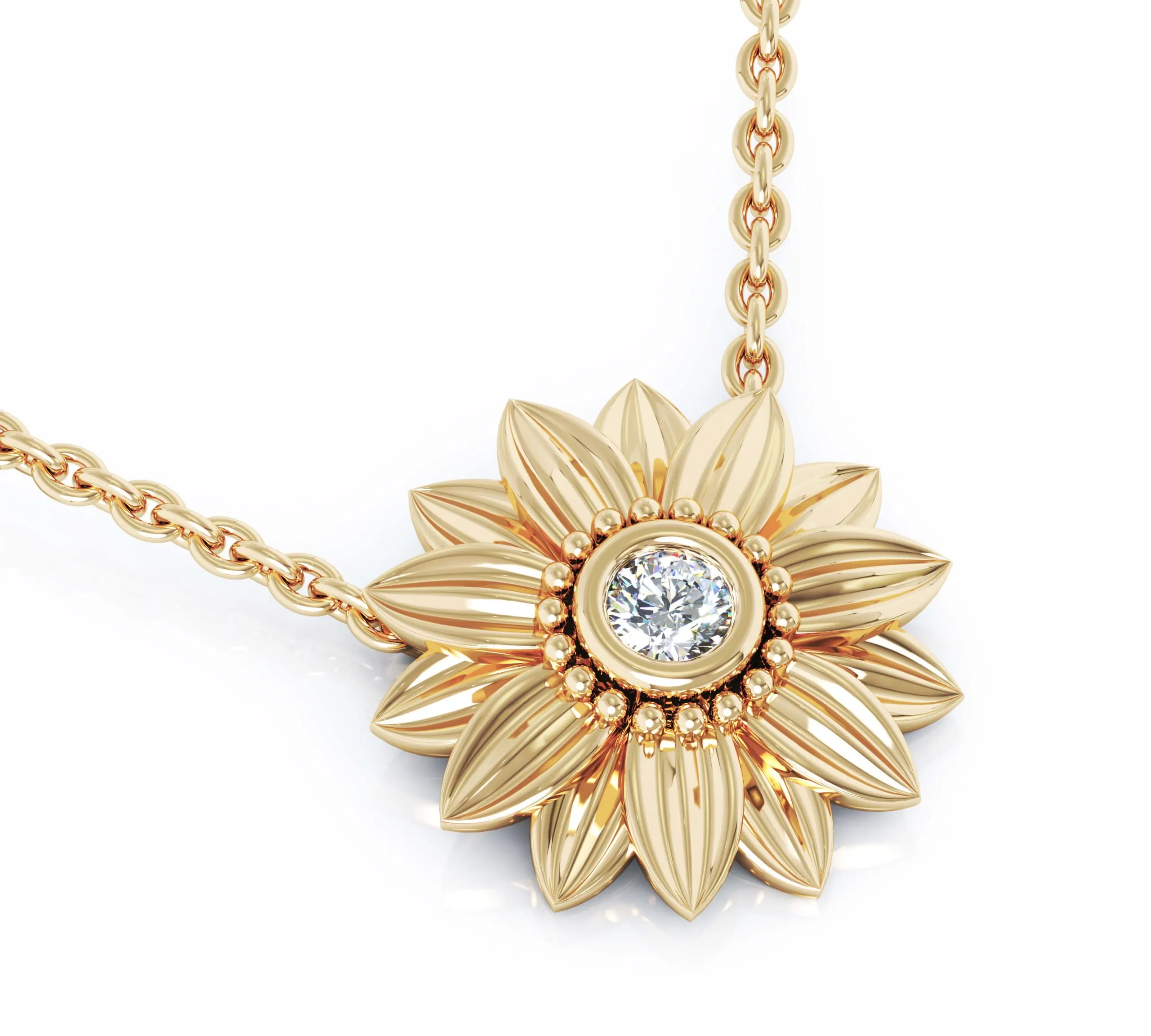 שרשרת תליון חמנייה בעיצוב פיליגרי עם יהלום מעבדה